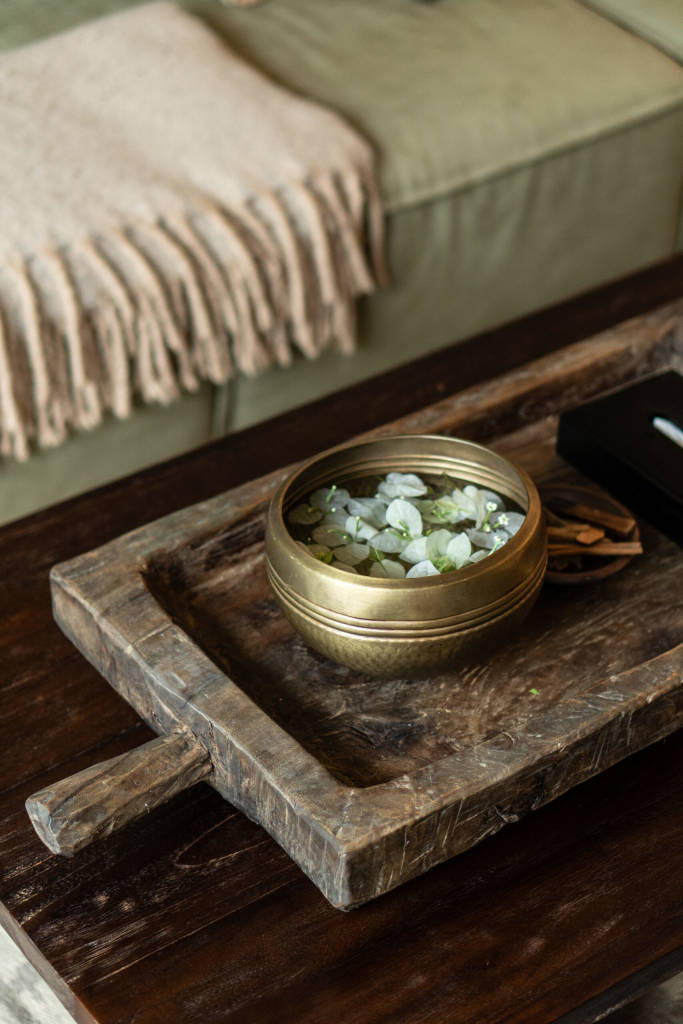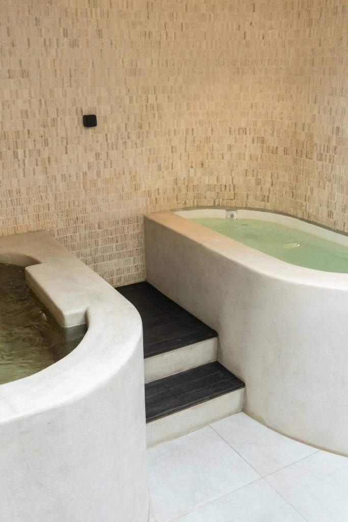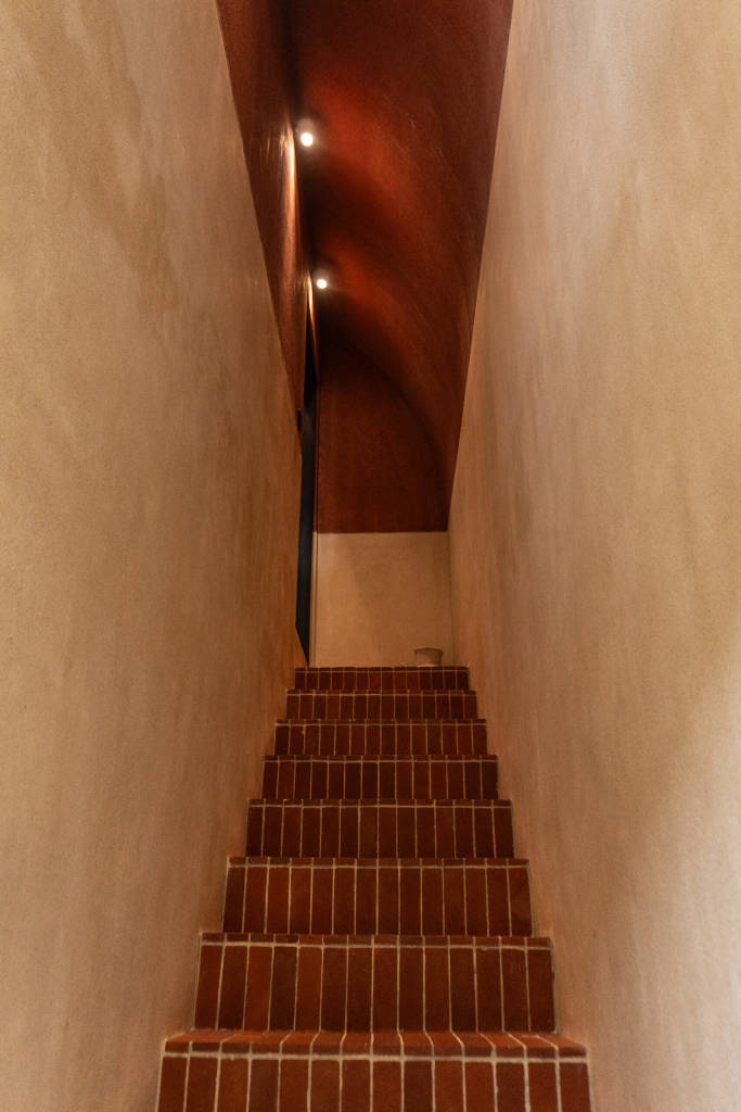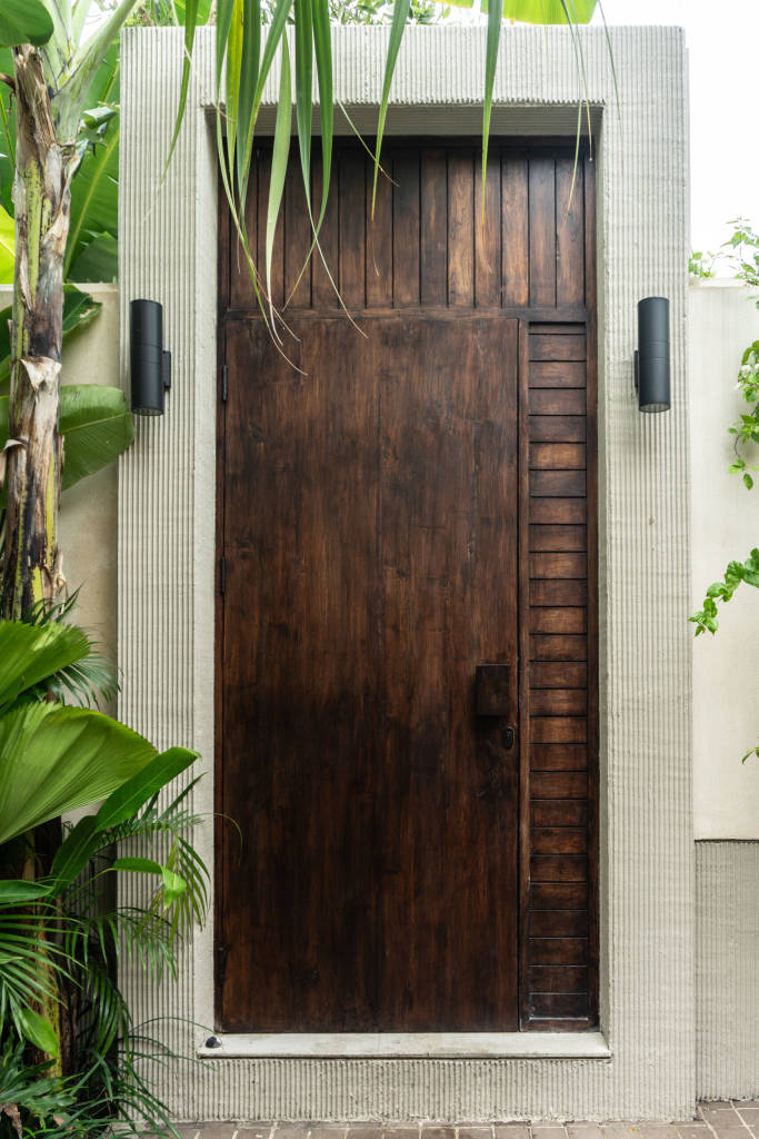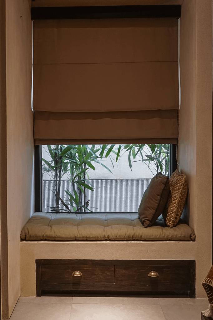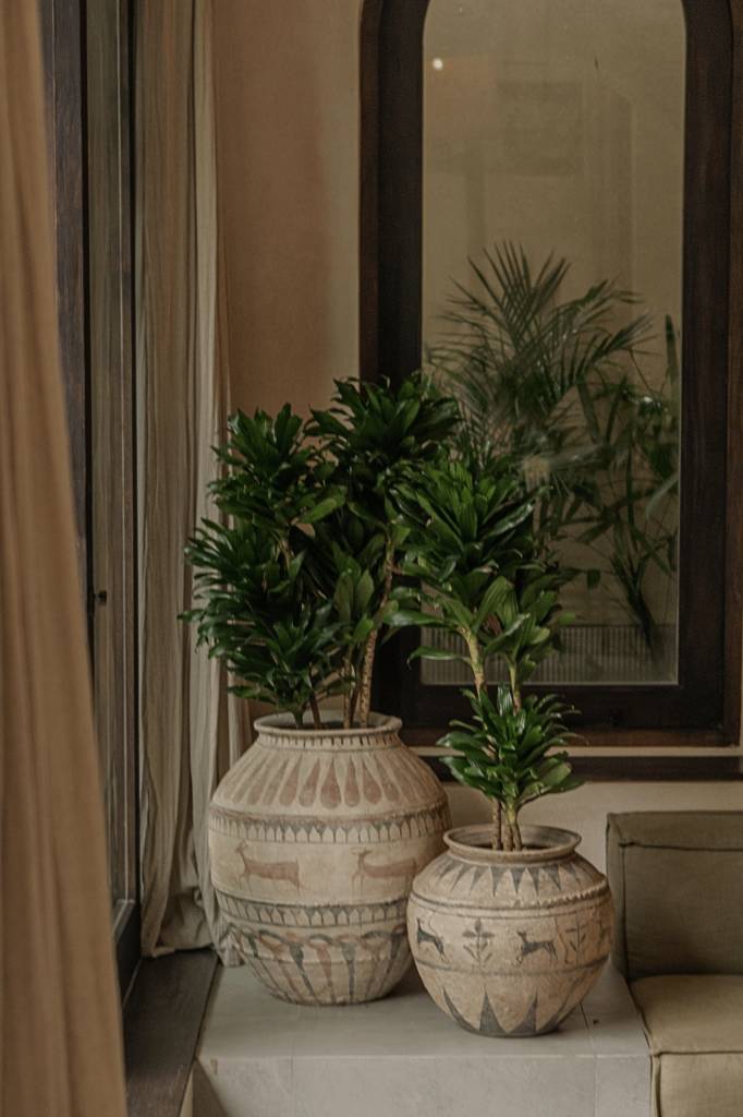 The design draws inspiration from arid landscapes and traditional craftsmanship, translated into a contemporary tropical context. Soft plastered walls, brick inlay details, warm timber surfaces, and woven textiles create an atmosphere that feels grounded yet refined. Every element was selected to evoke stillness.
