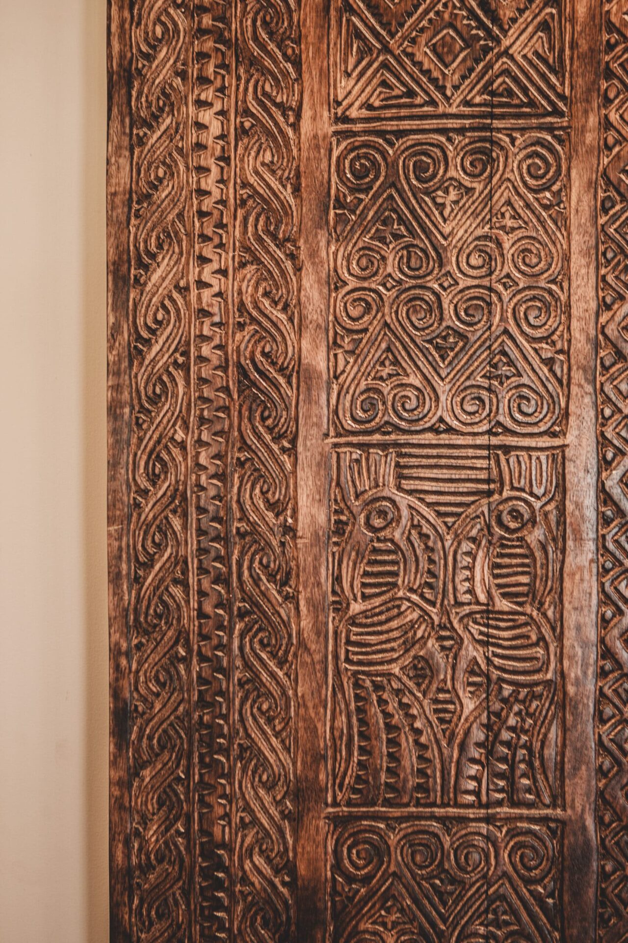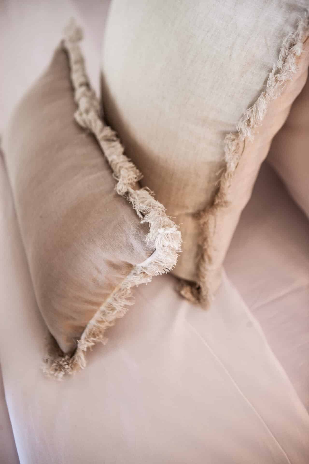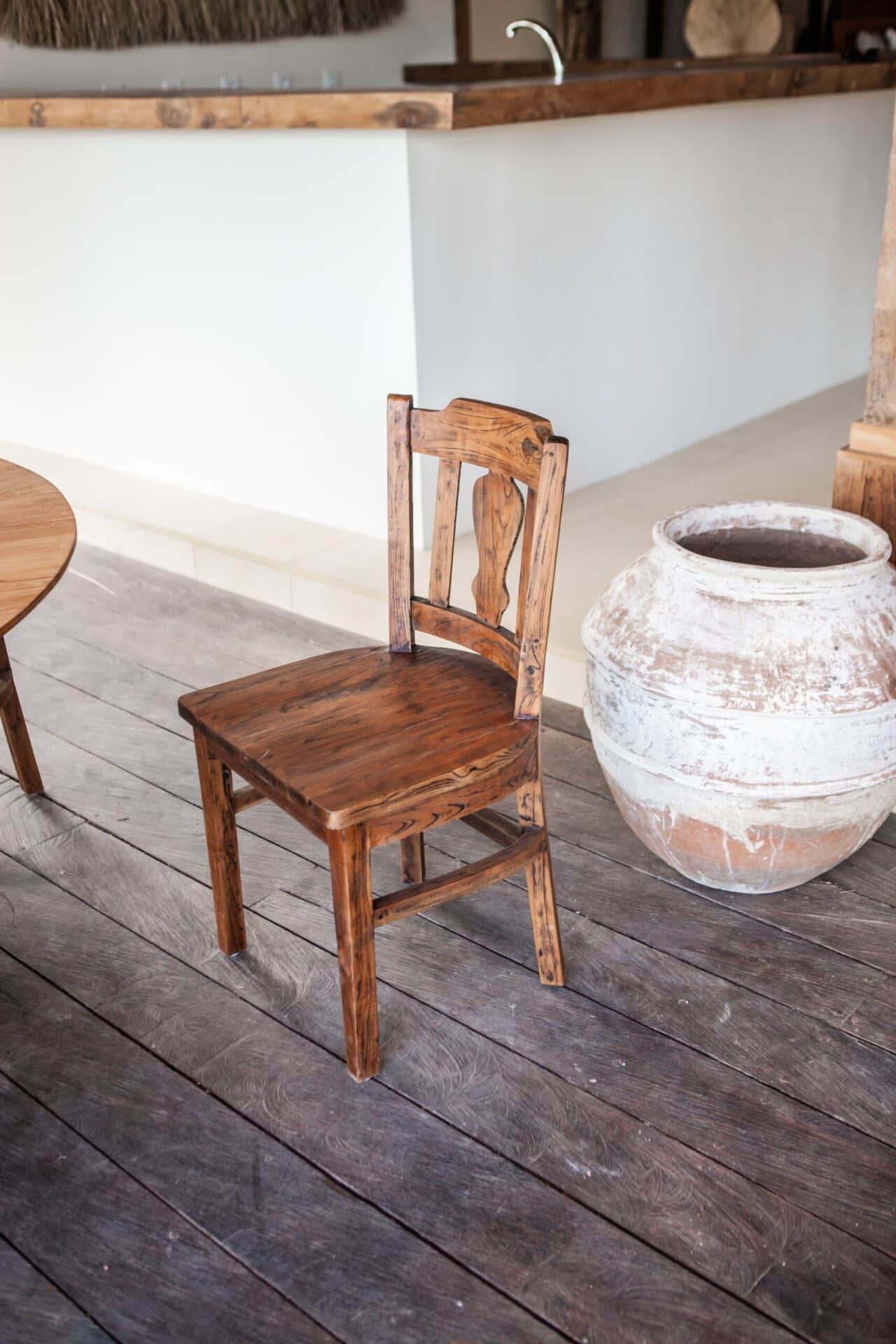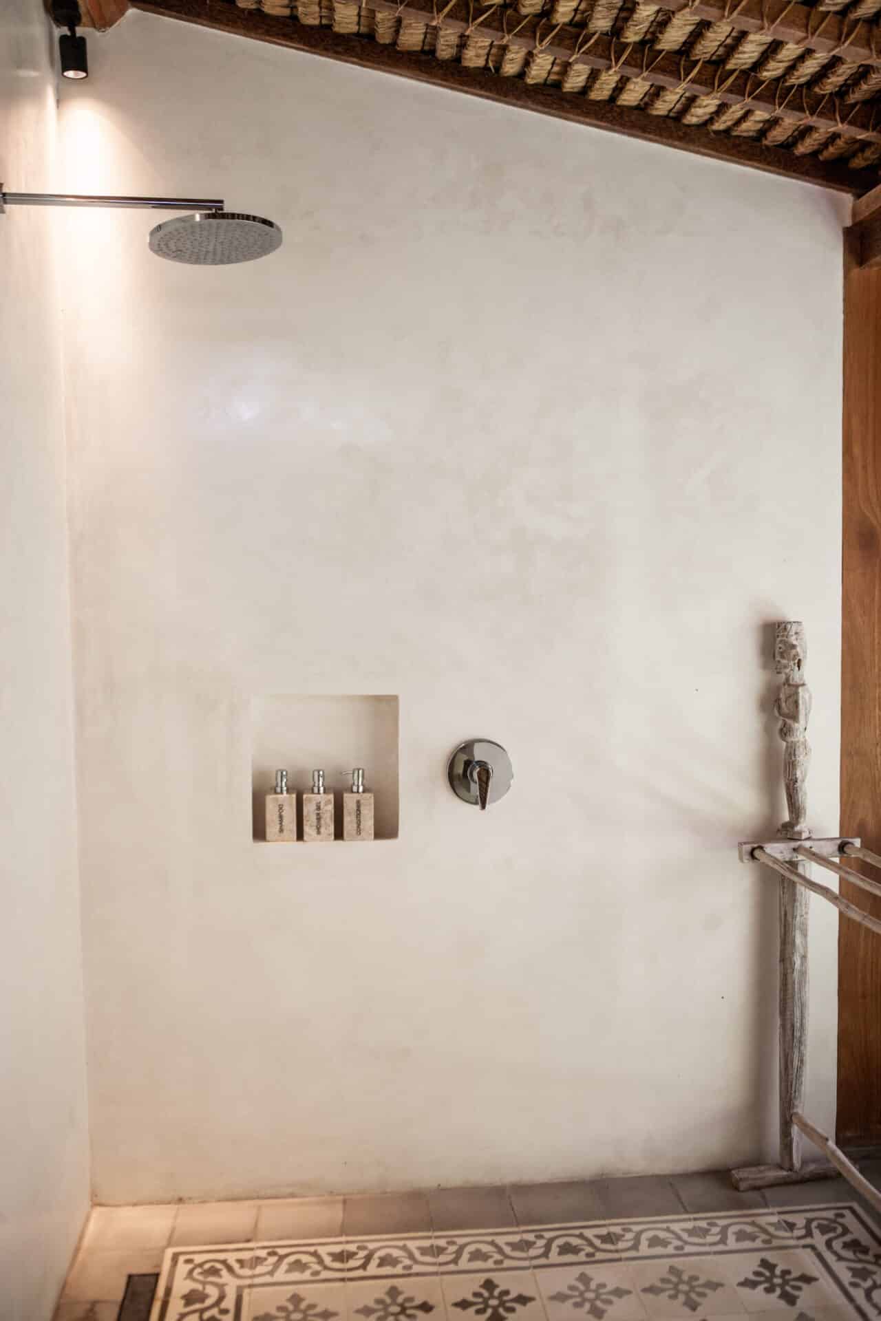 The interiors celebrate craftsmanship and raw materials. Solid wood tables, rattan cabinetry, carved details, and patterned tiles introduce depth and authenticity, while open shelving and curated objects add personality without clutter. In the bedrooms, neutral tones and layered fabrics soften the space, allowing natural light and texture to take center stage. Every corner feels intentional yet relaxed, as if it has evolved naturally over time.