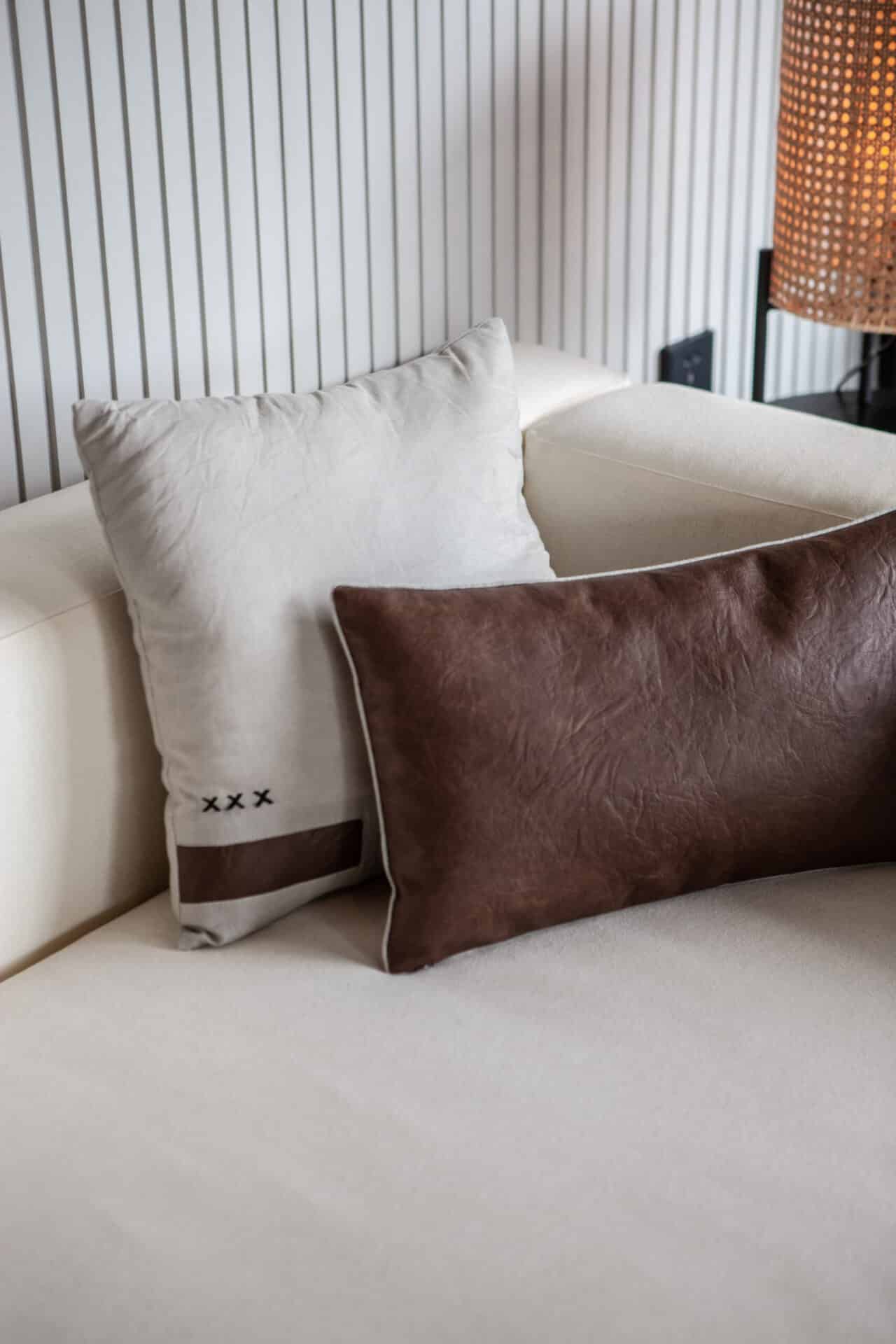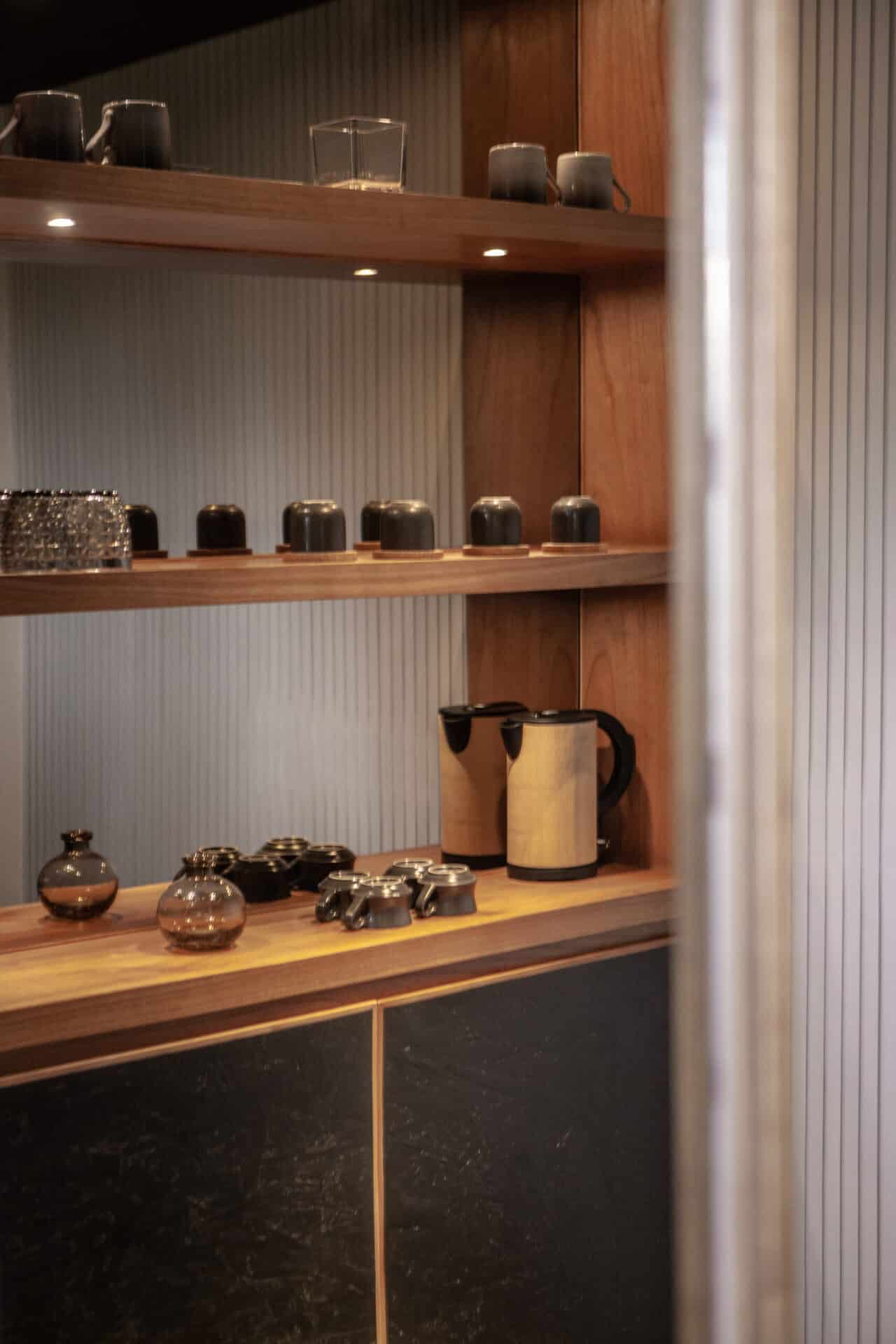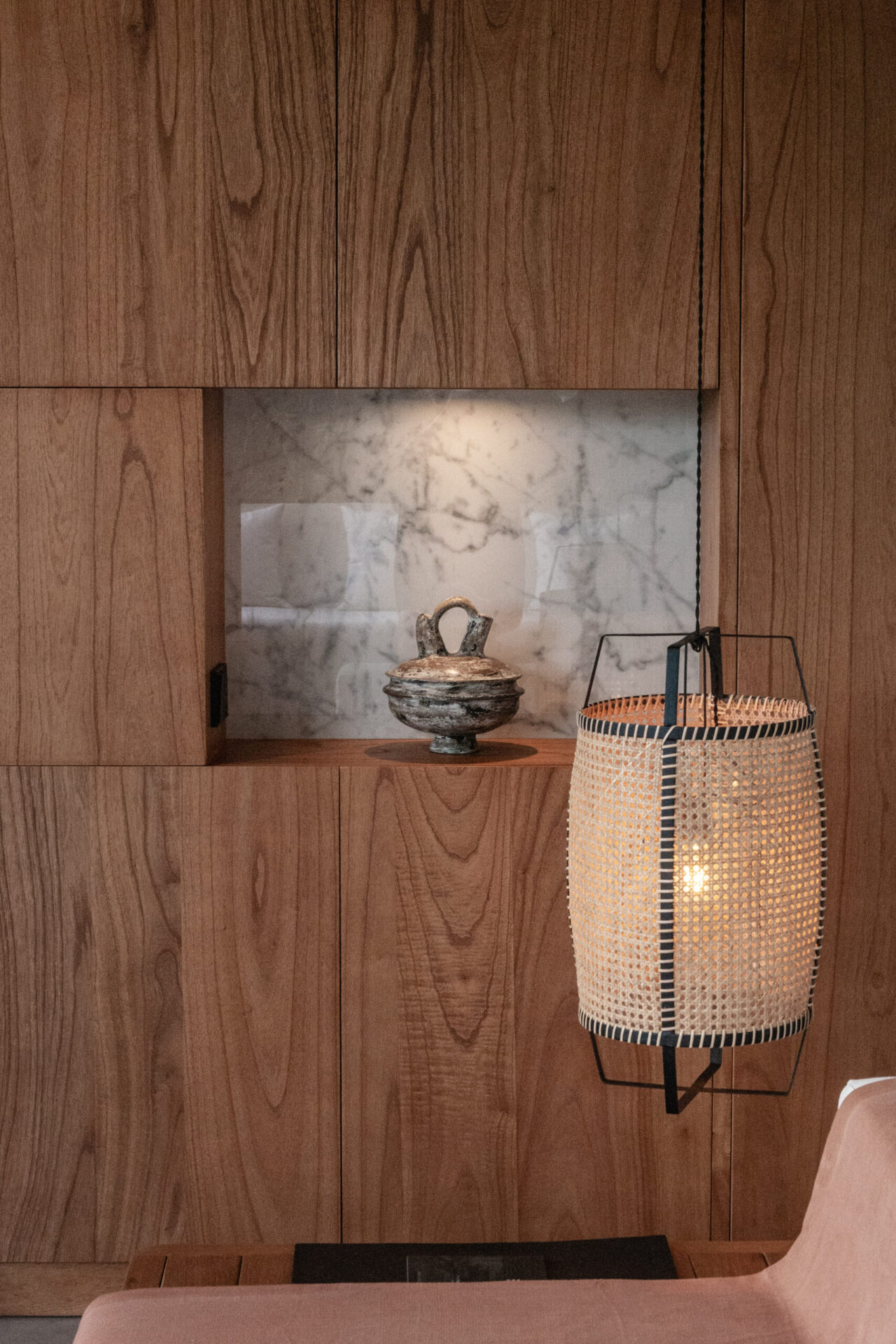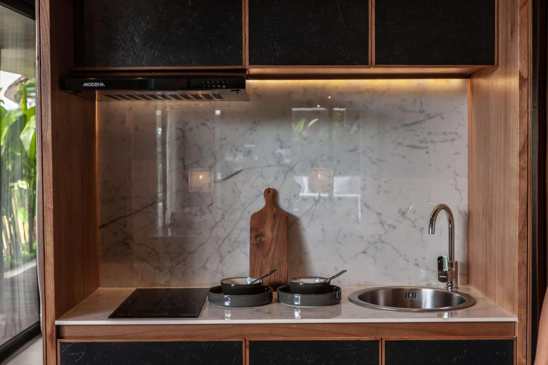 For the Tamora Apartment project, Paz Studio curated an environment that epitomizes the “less is more” philosophy through a Contemporary & Minimalist lens. The living area features a clean-lined, low-profile sofa set against a vertical slatted feature wall, creating a sense of height and architectural rhythm within the compact space.