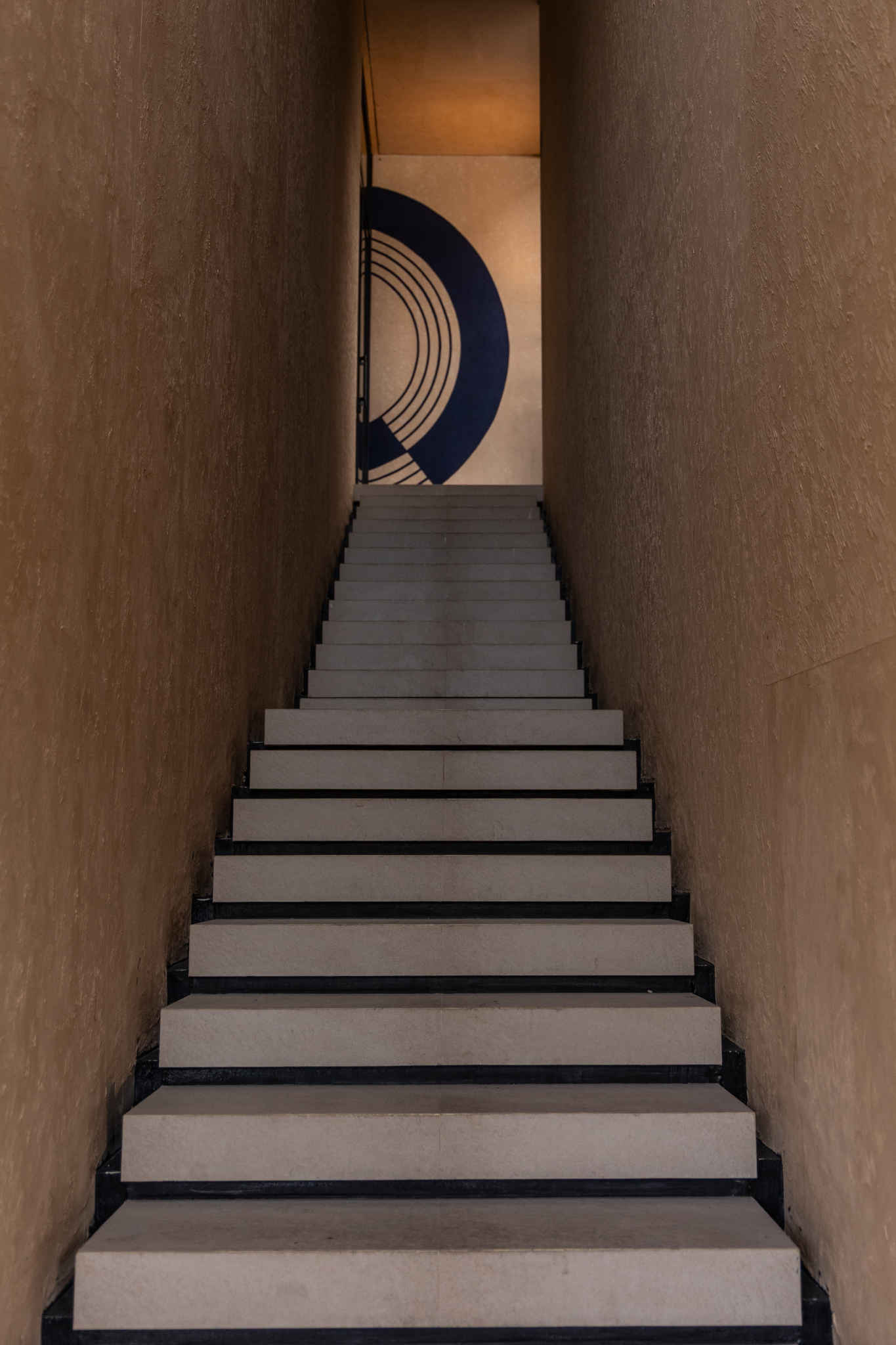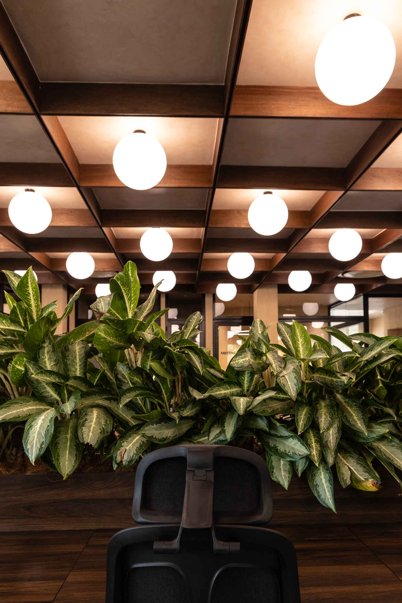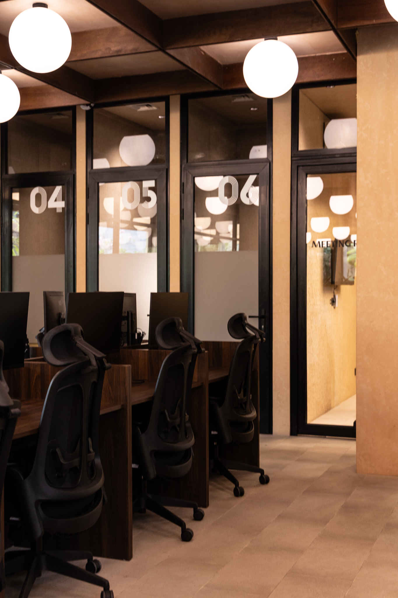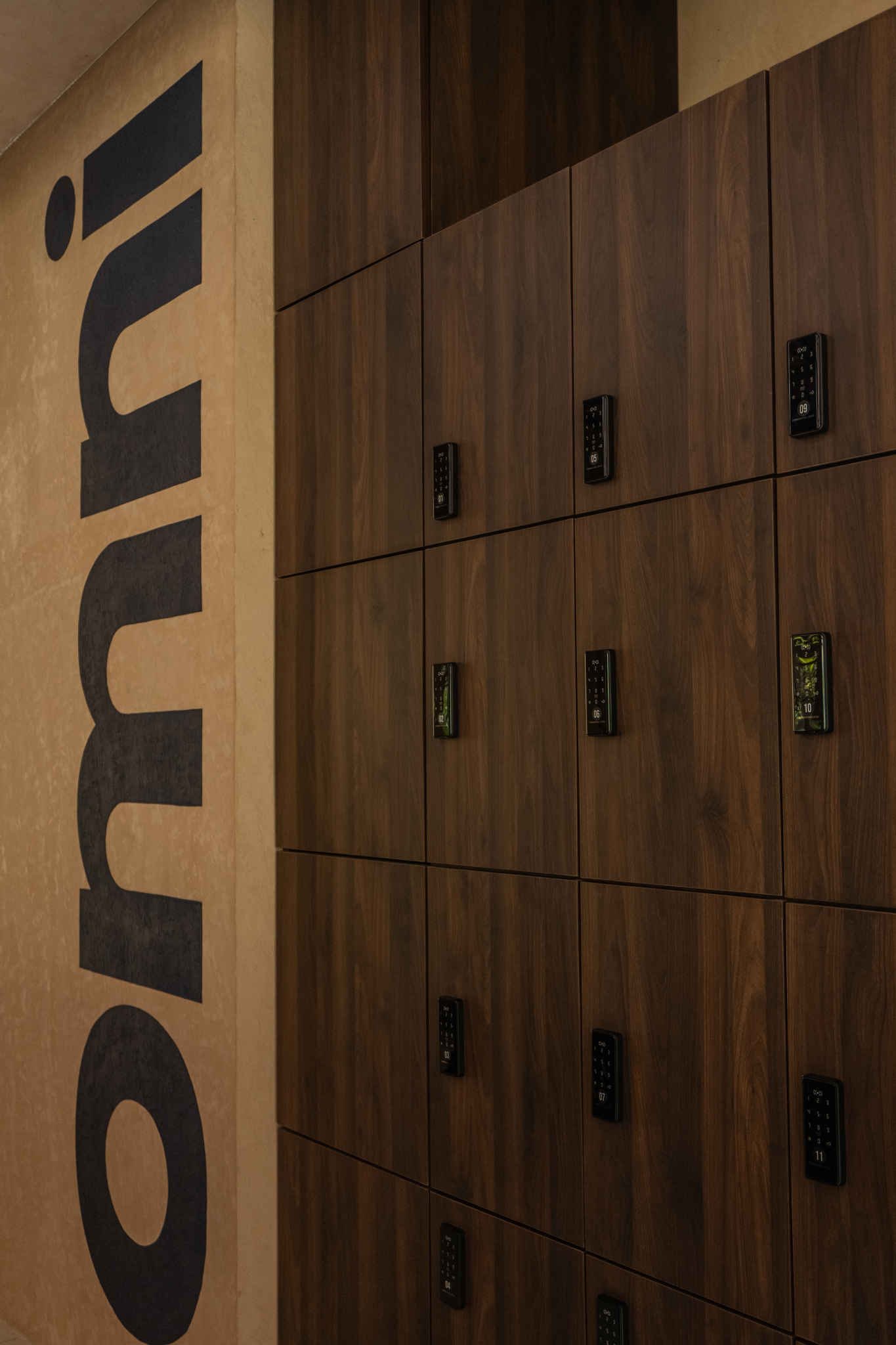 Layered wood lockers, soft curved seating, handcrafted wall finishes, and sculptural lighting come together in a rhythm of repetition and calm geometry. Natural light filters through textured surfaces, while greenery softens architectural lines, blurring the boundary between interior and nature.