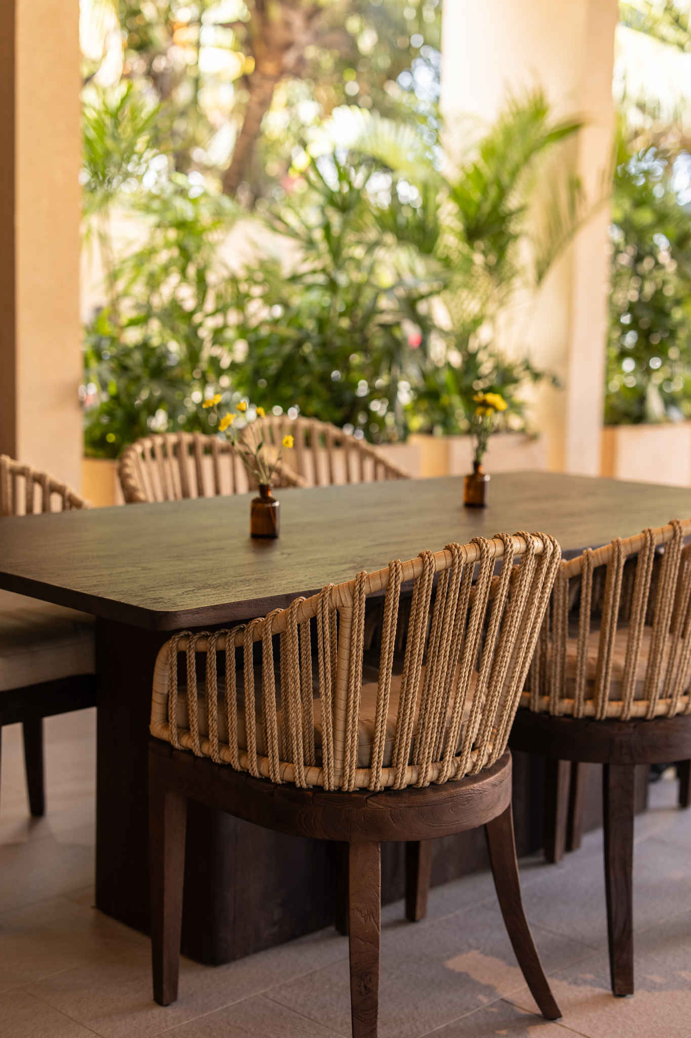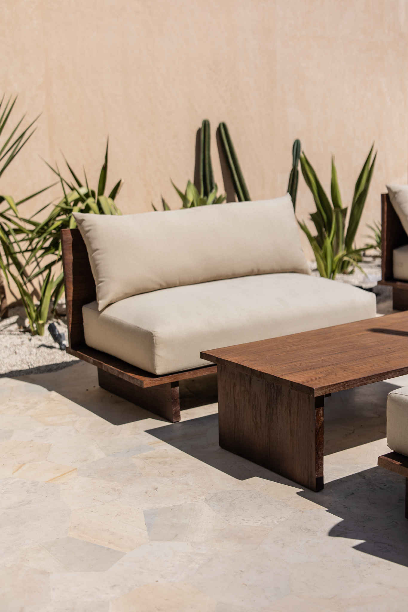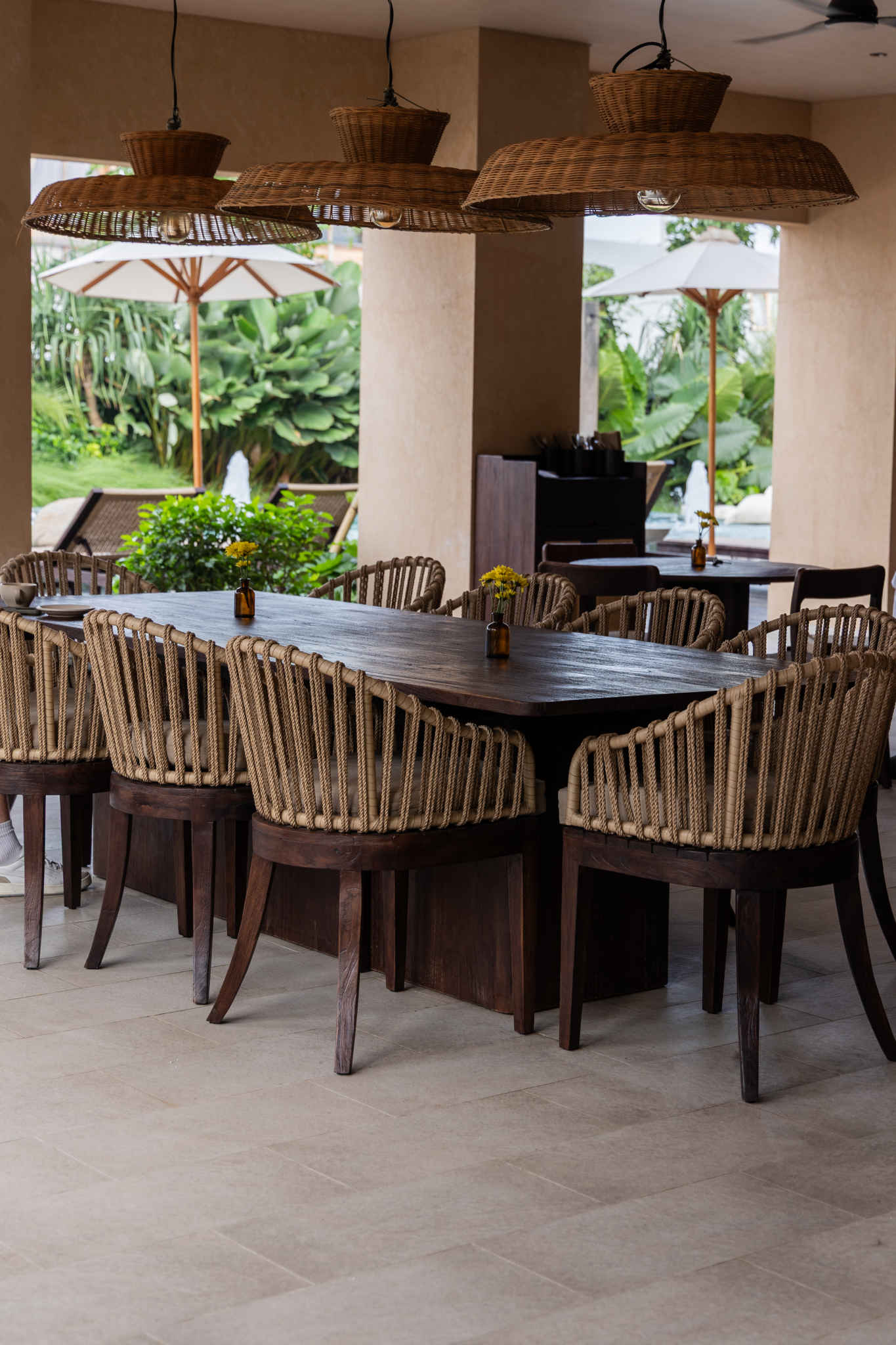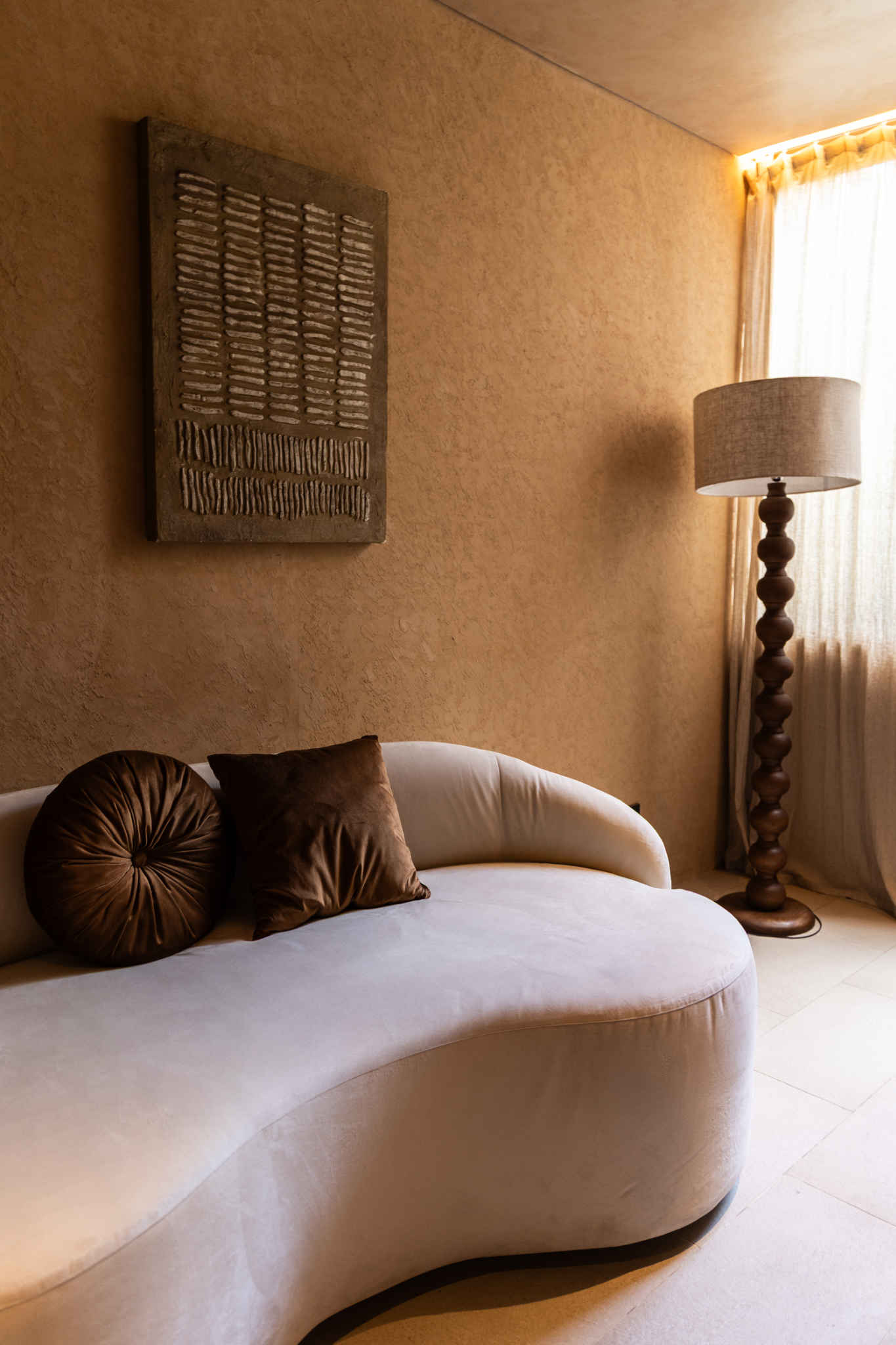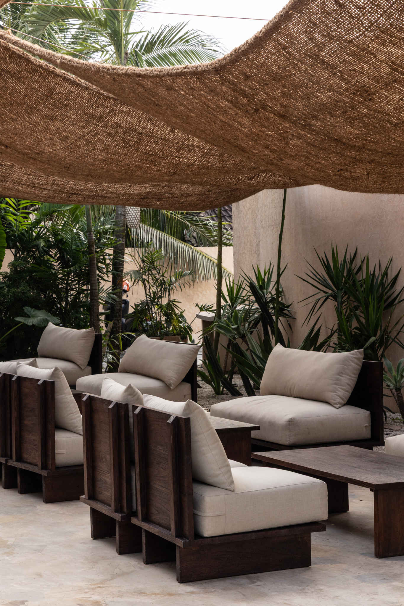 OMNI is a study in warmth, material honesty, and tropical sensibility. Designed around organic textures and grounded forms, the space embraces a muted earthy palette—sand, walnut, bronze, and deep greens—creating an atmosphere that feels both intimate and expansive.