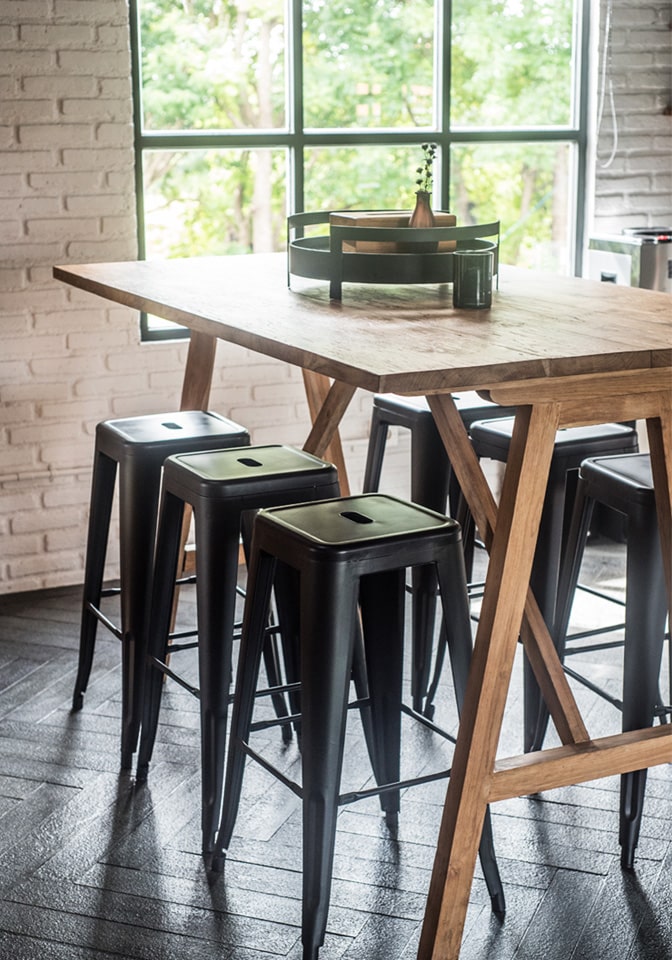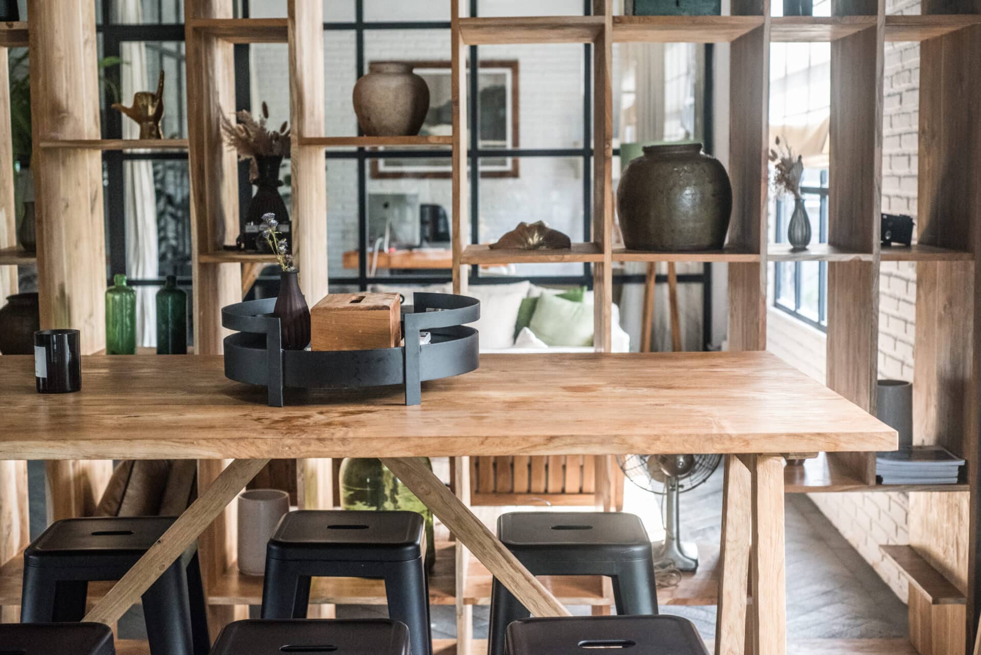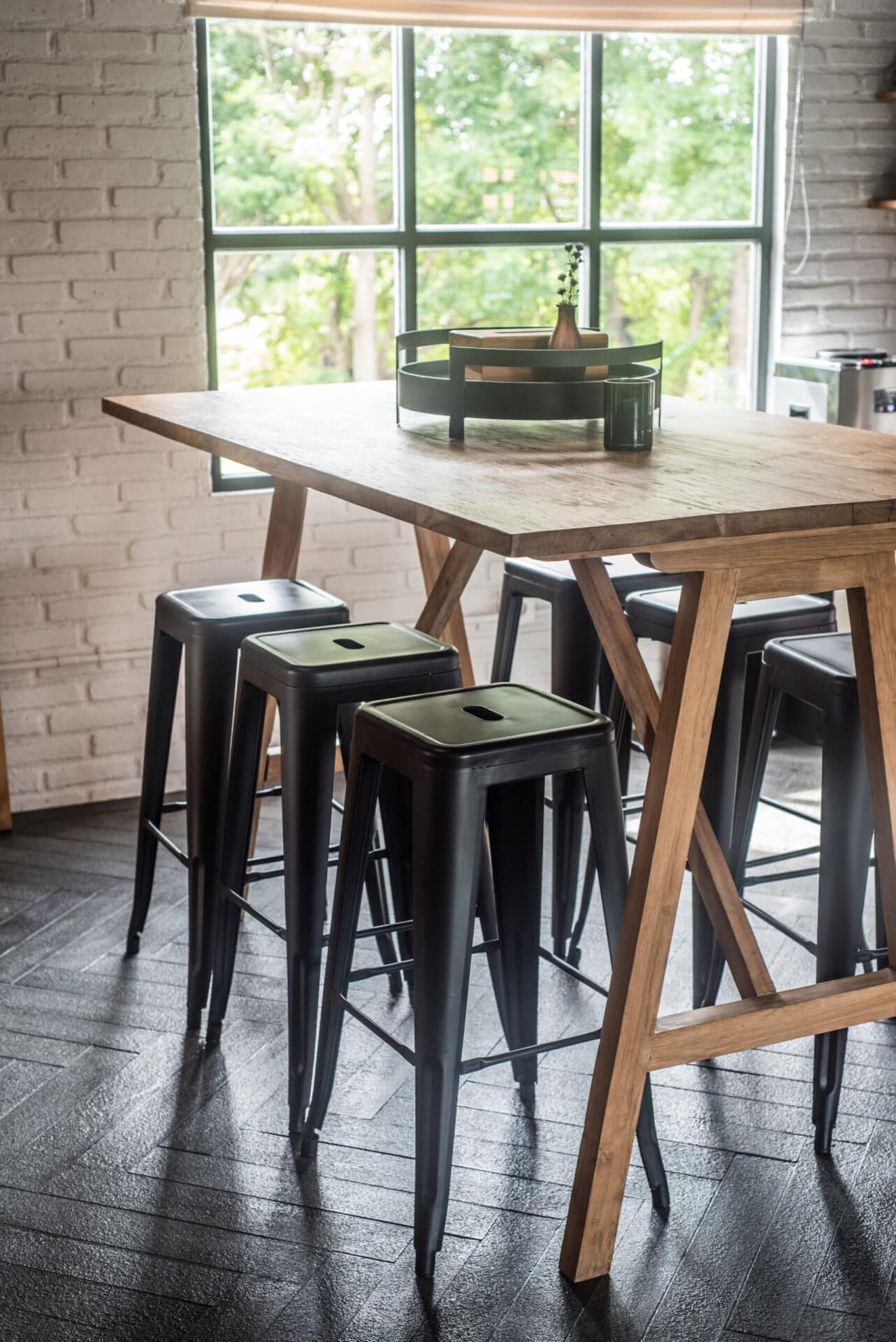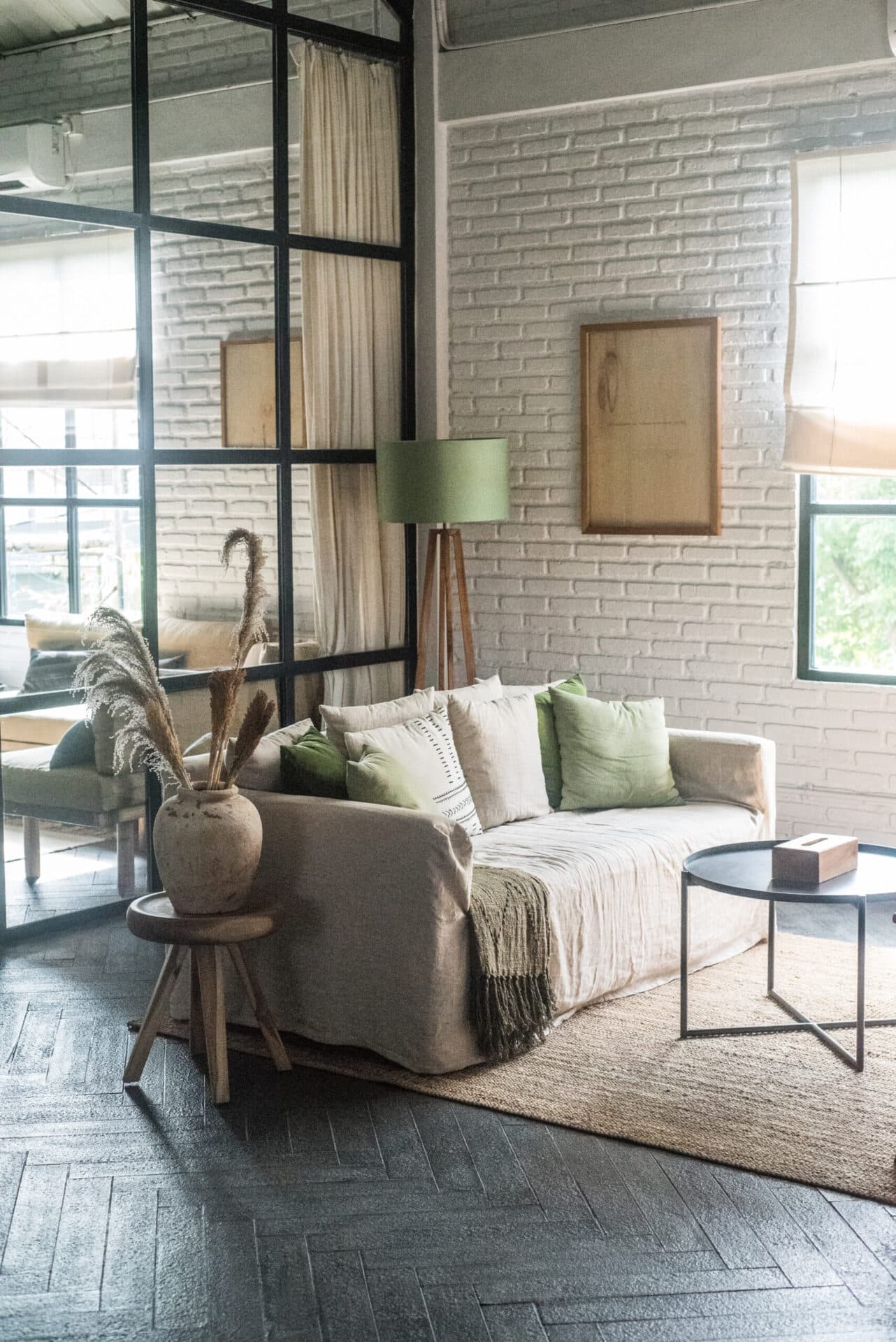 We anchored the main work area with dark herringbone flooring, which provides a sophisticated foundation for the bespoke timber desks and lush oversized greenery that brings a vital, organic energy into the professional environment. By contrasting the cool industrial elements with warm wood accents and artisanal pottery, we created a headquarters that inspires both productivity and creative calm.