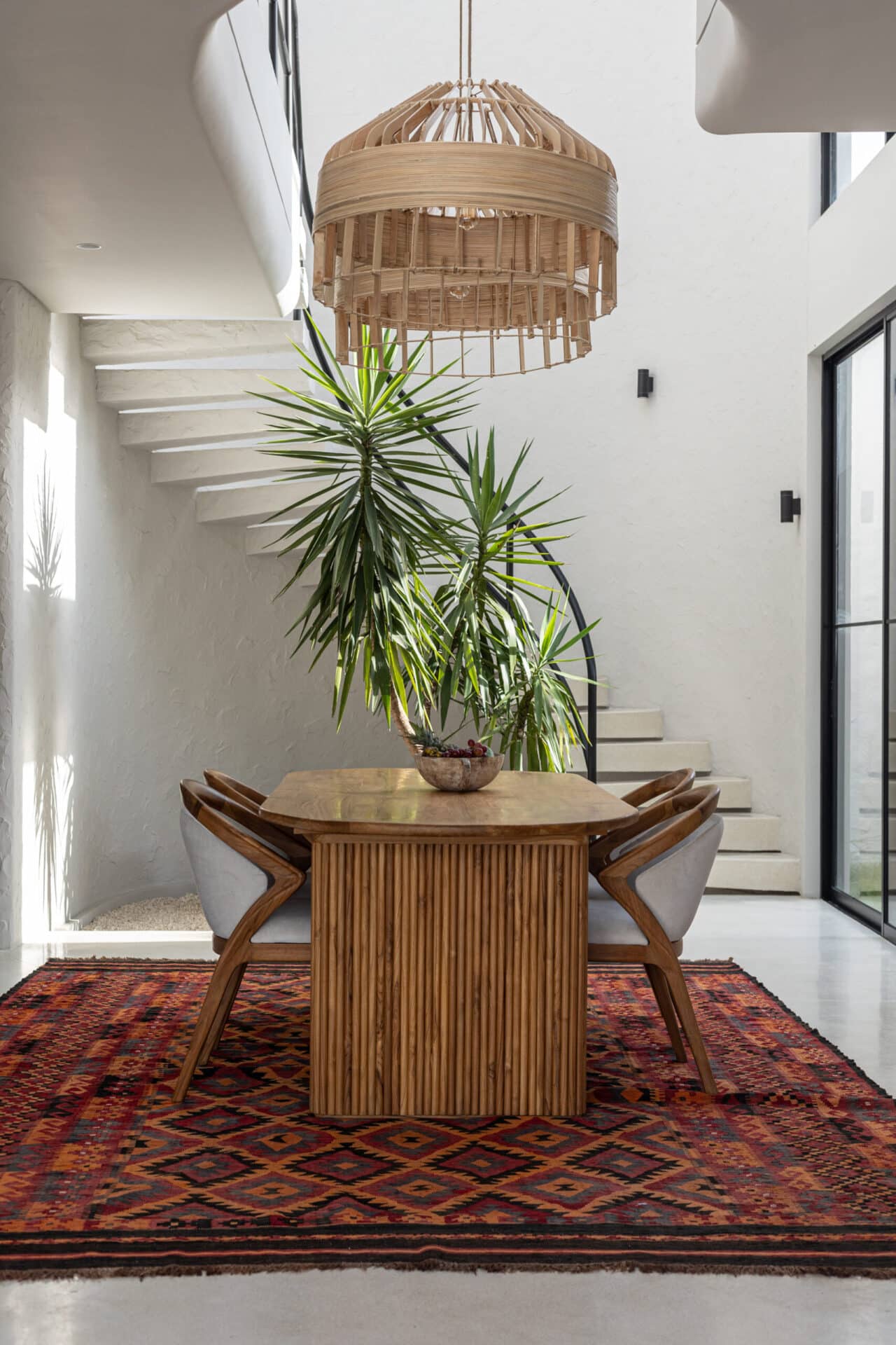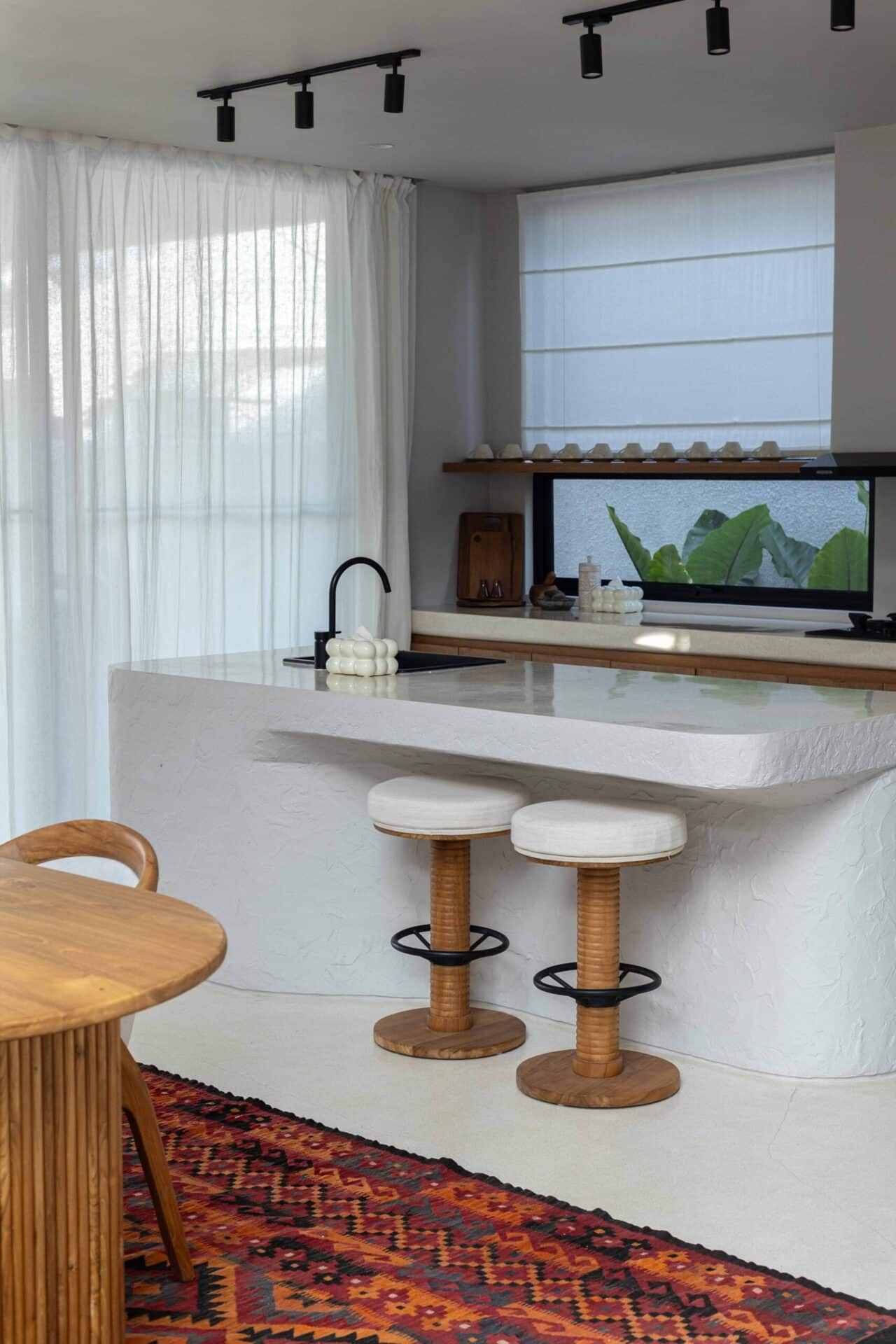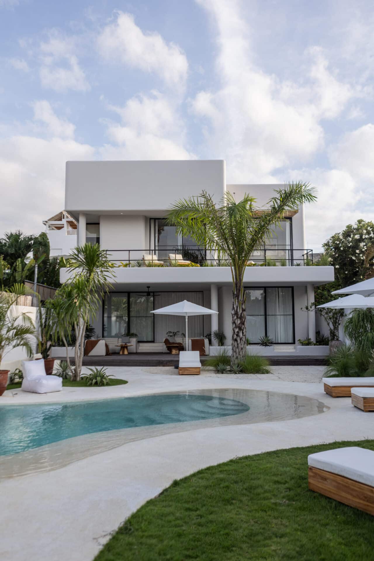We designed Villa Berawa Breeze as a contemporary sanctuary where the vibrant soul of Moroccan craftsmanship meets the clean, airy lines of tropical architecture. We conceptualized the space as a series of fluid, light-filled volumes, using hand-textured plaster and smooth concrete to create a soft, monolithic backdrop. The narrative of the home is defined by its architectural curves—from the sweeping kitchen island to the sculptural spiral staircase—which are grounded by the rich patterns of traditional tribal rugs and woven ikat textiles.