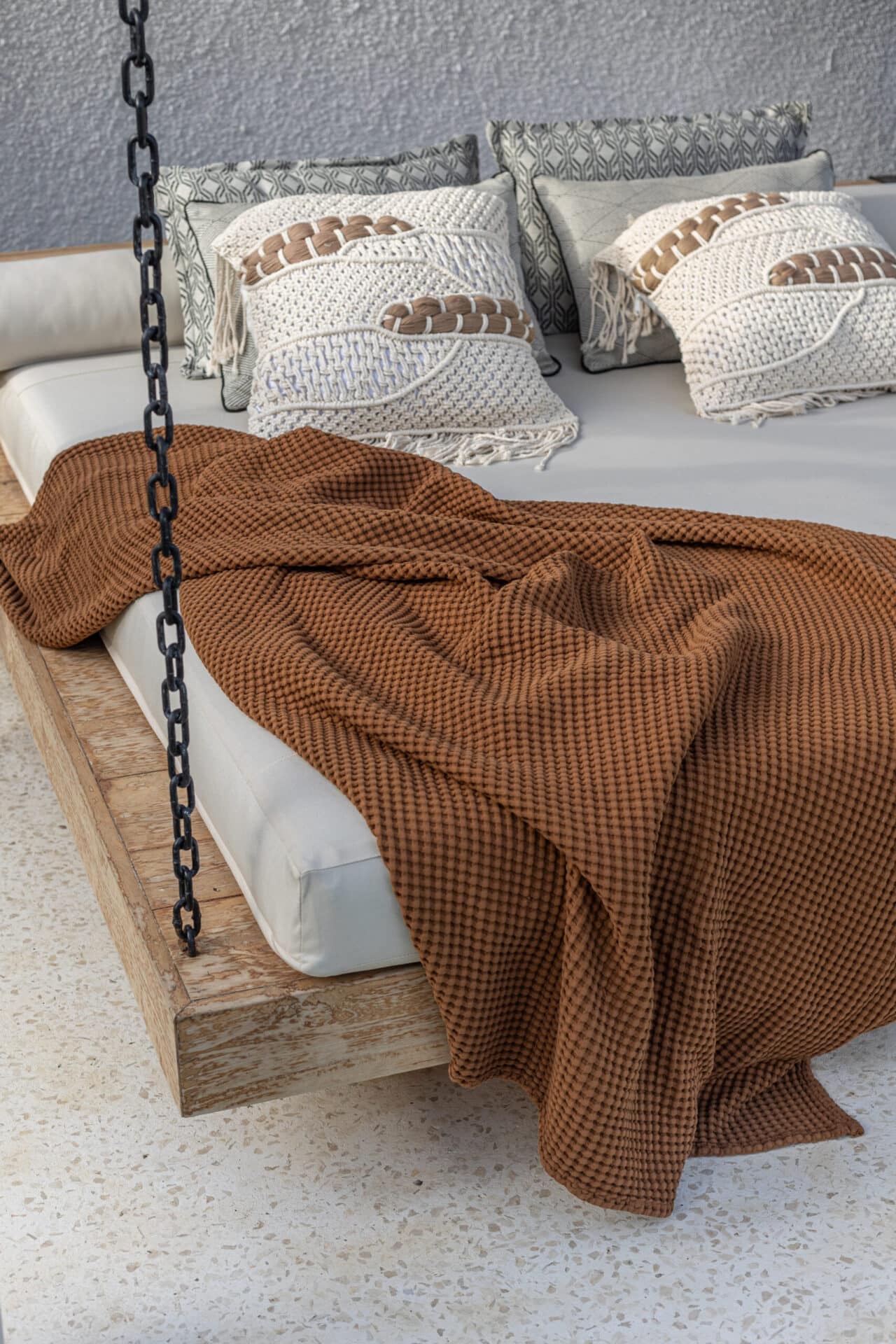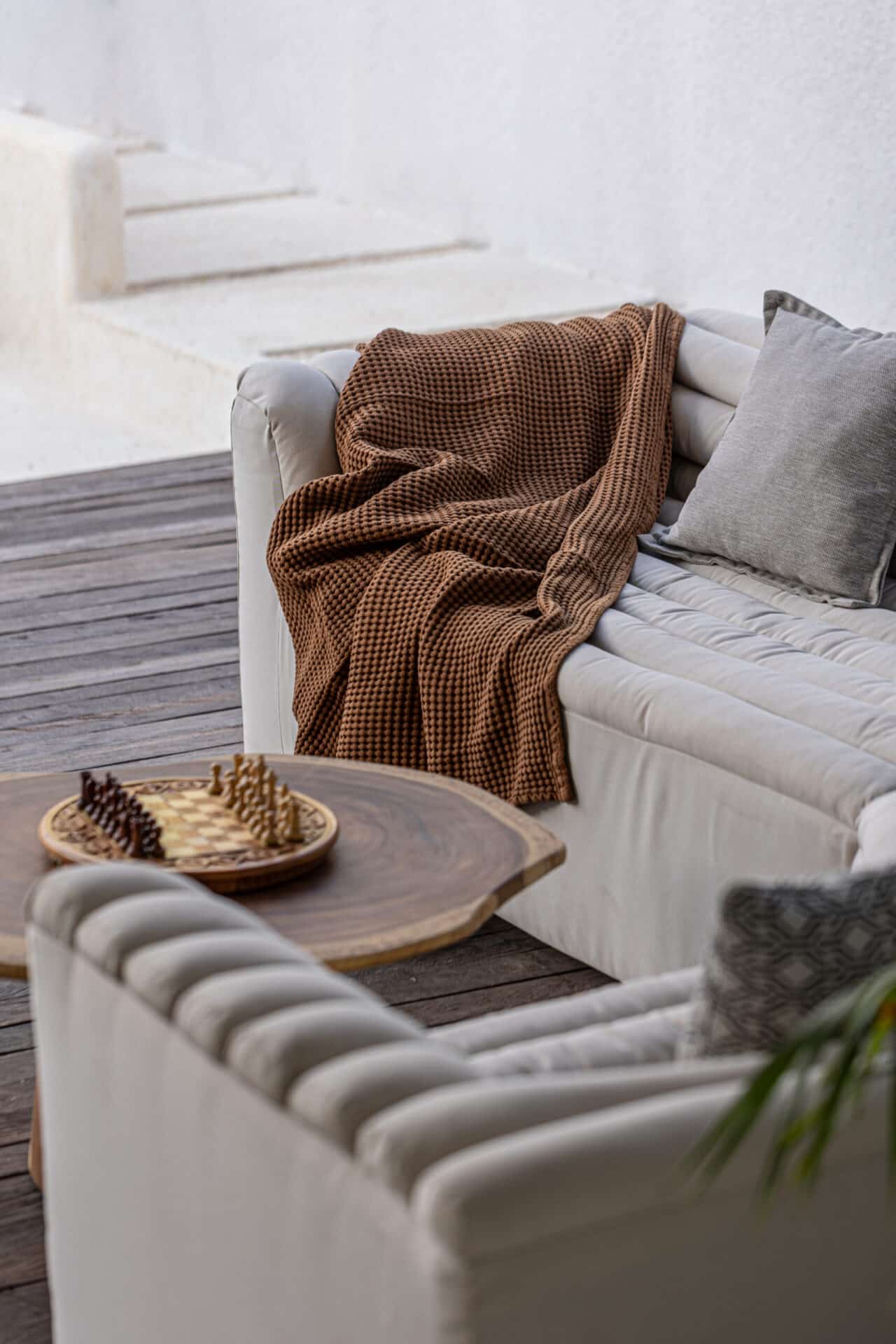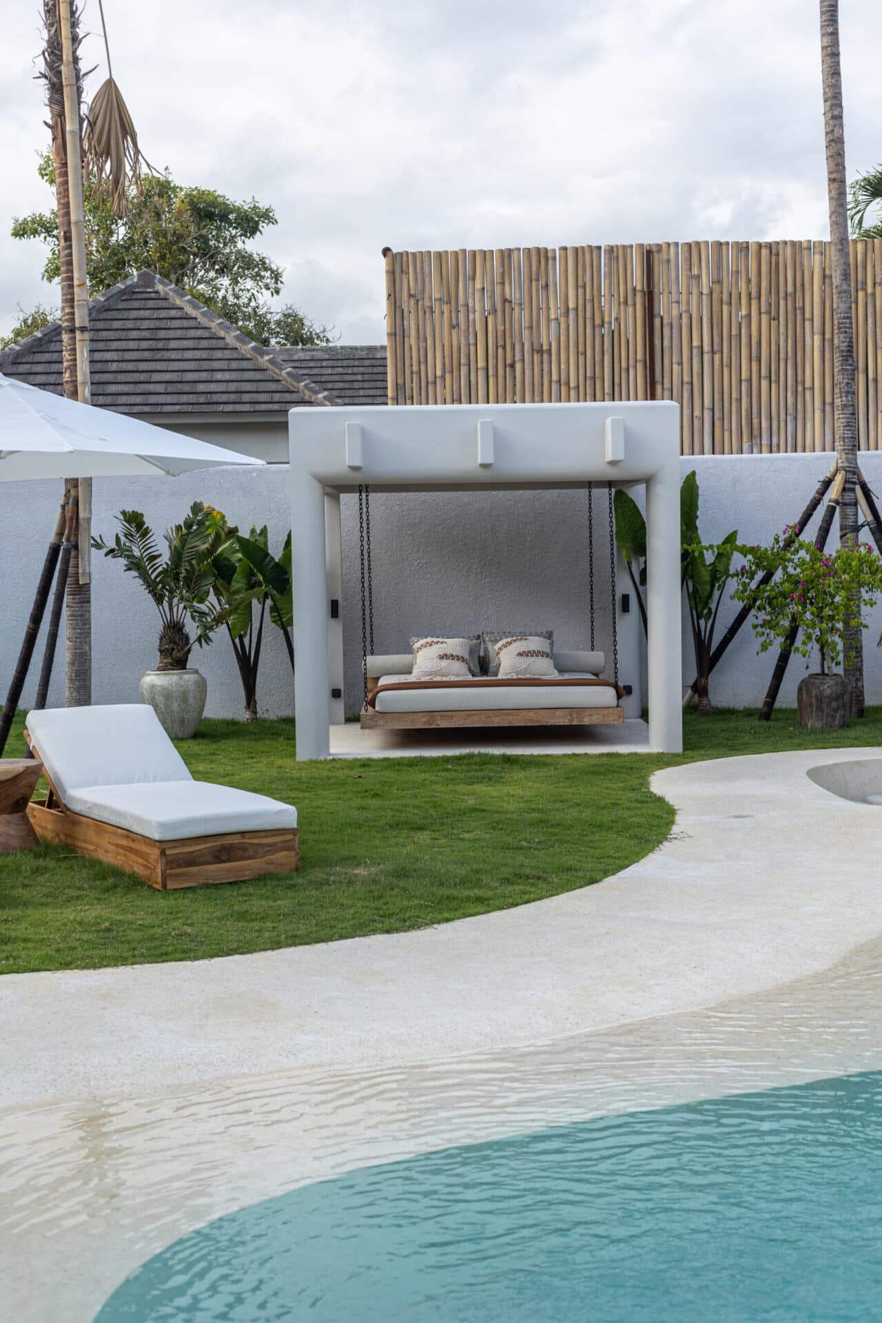 Every corner of the villa is an intentional study in comfort and cultural fusion, designed to feel both exotic and deeply serene. Whether it is the bedroom where a hand-woven tapestry serves as a headboard or the outdoor lounge set against a backdrop of towering cacti, the design celebrates the beauty of global influence. For Paz Studio, Villa Berawa Breeze is a testament to the harmony of contrast—a place where the desert’s stillness and the ocean’s breath coexist in perfect architectural balance.
