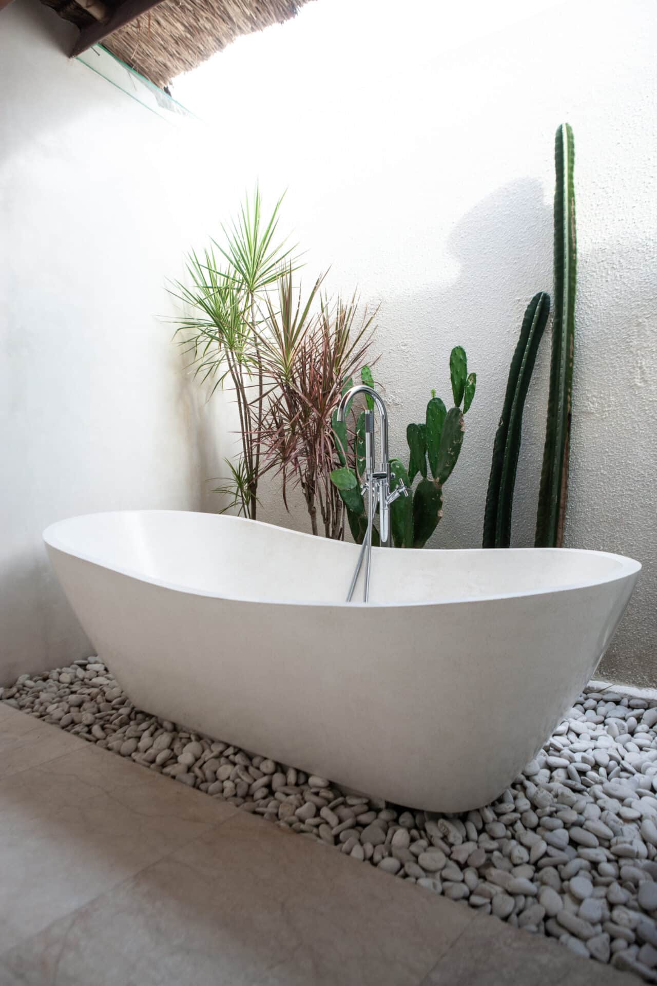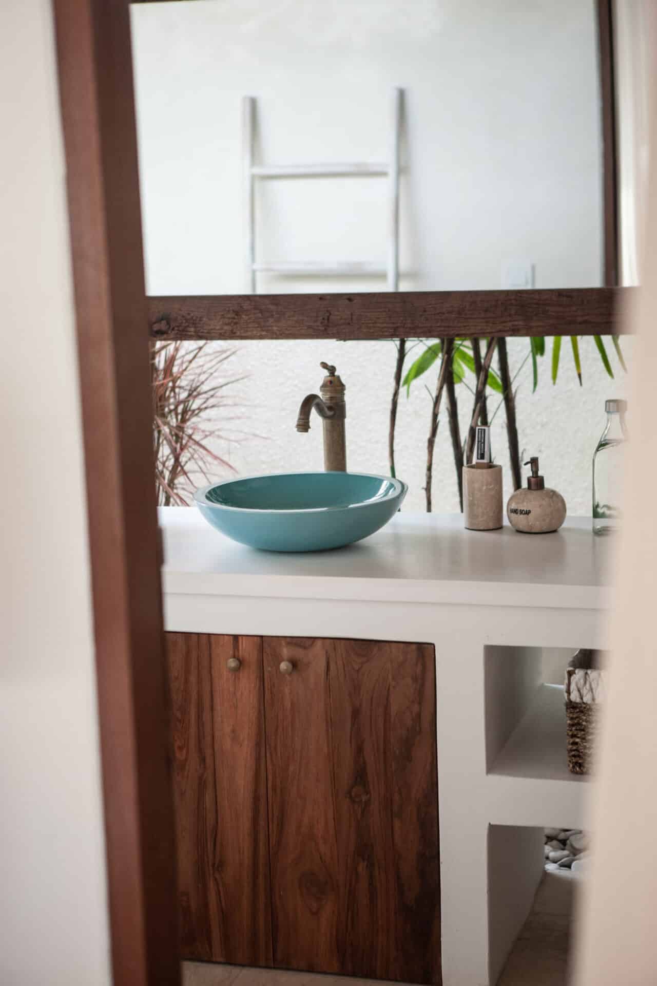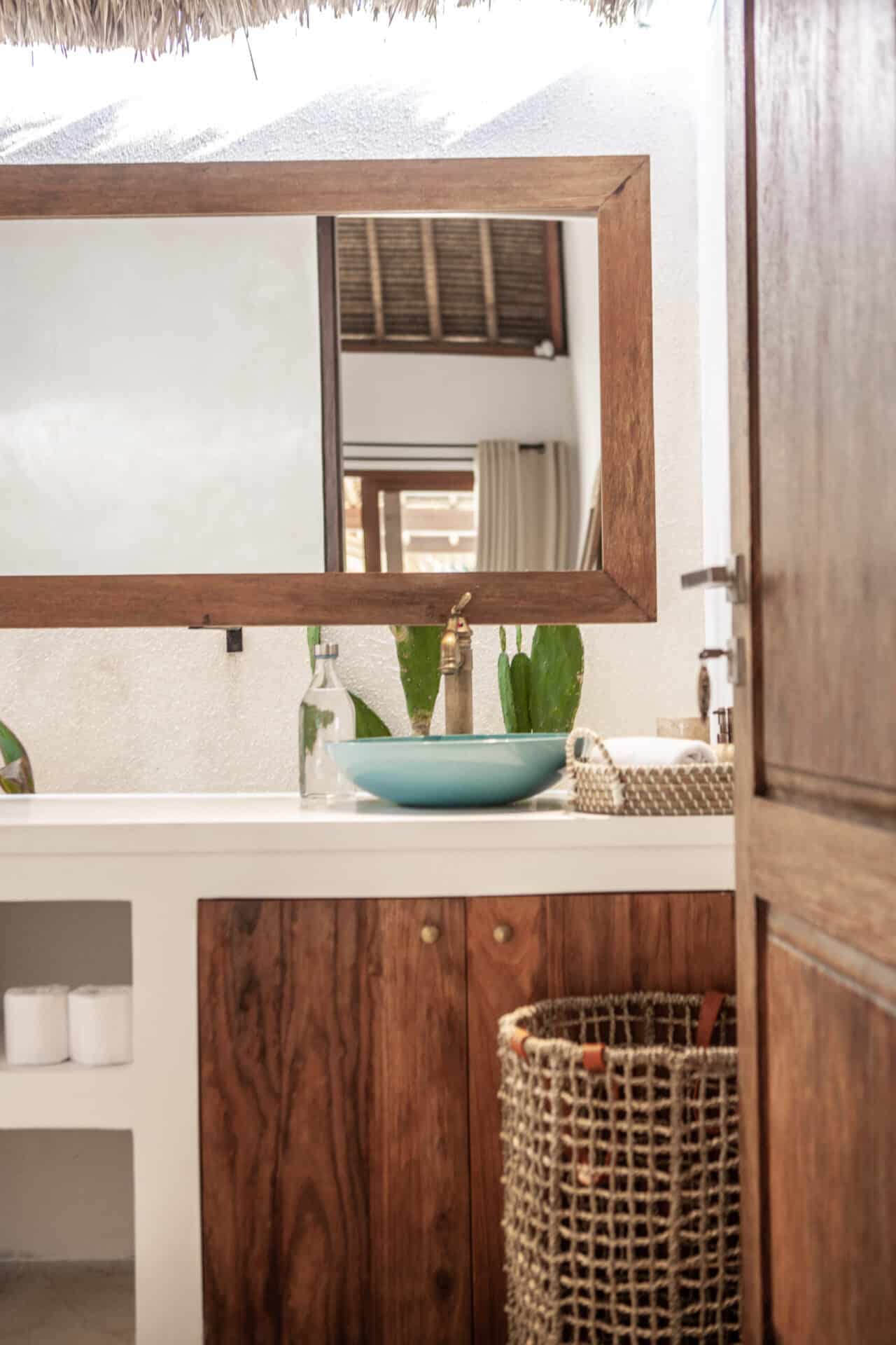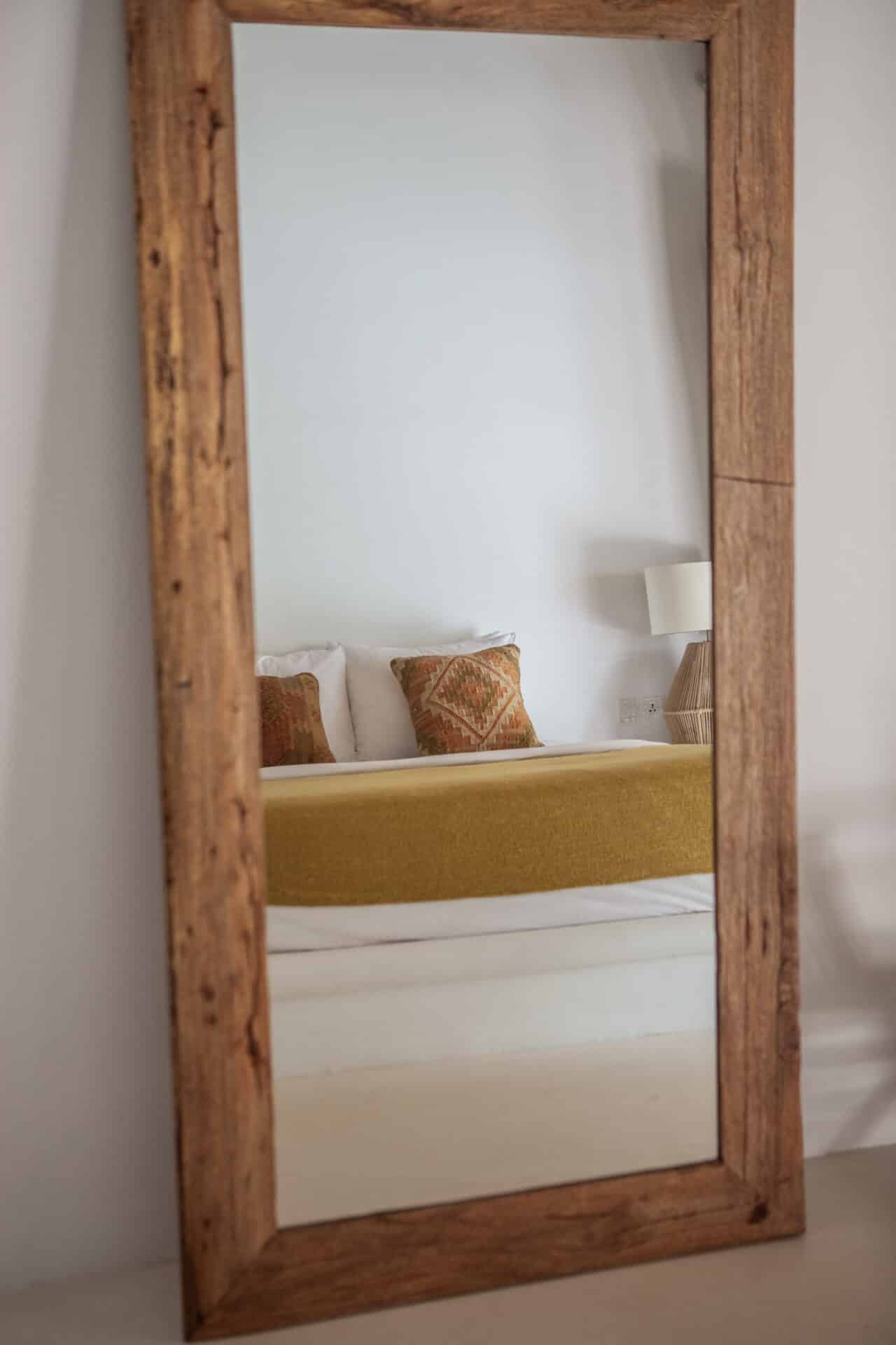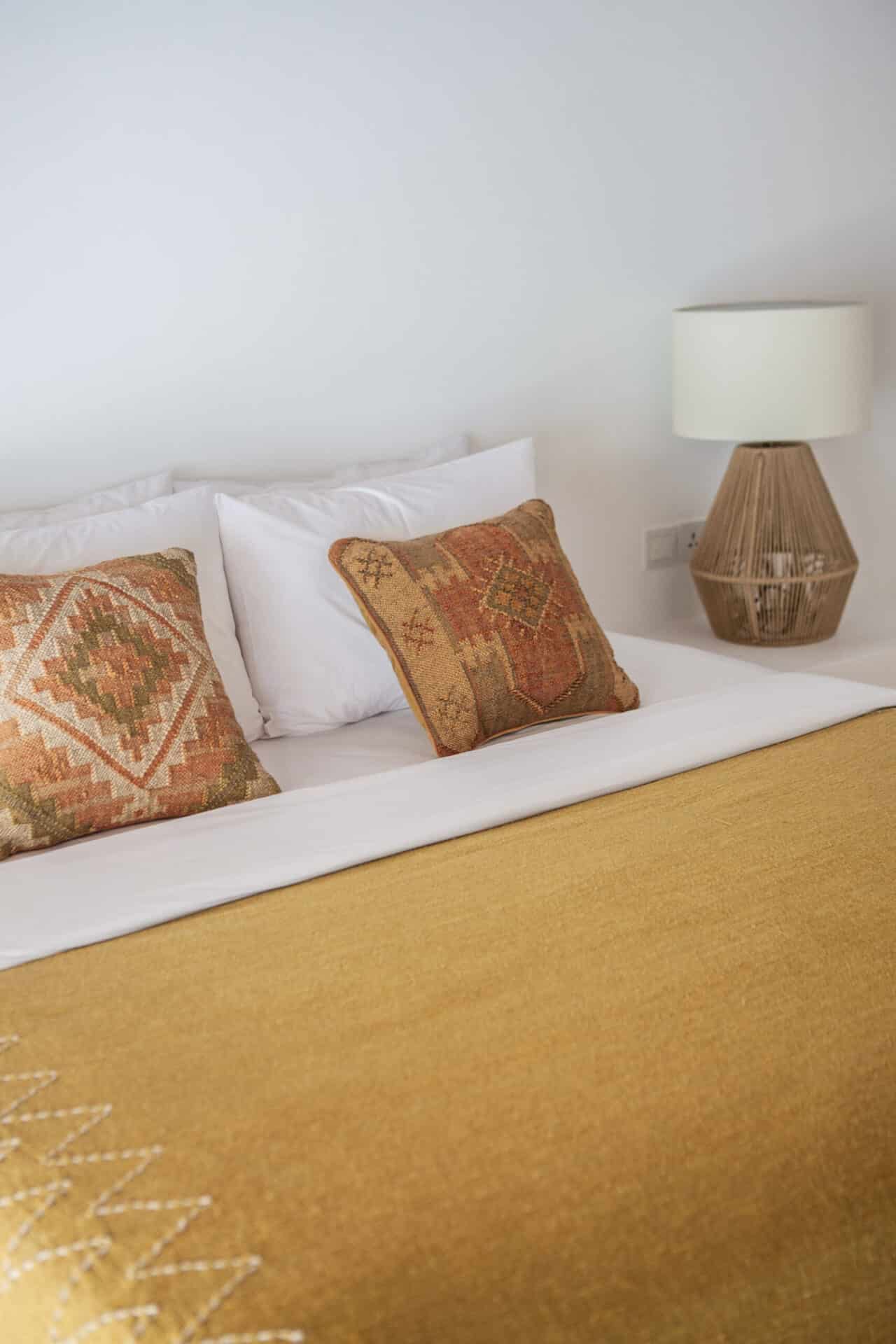 We focused heavily on the use of raw, noble materials to bring a sense of timelessness to the villa’s interior. In the heart of the home, we featured a bespoke dining table crafted from reclaimed tropical timber, paired with hand woven rattan pendant lights that cast intricate shadow patterns across the space.