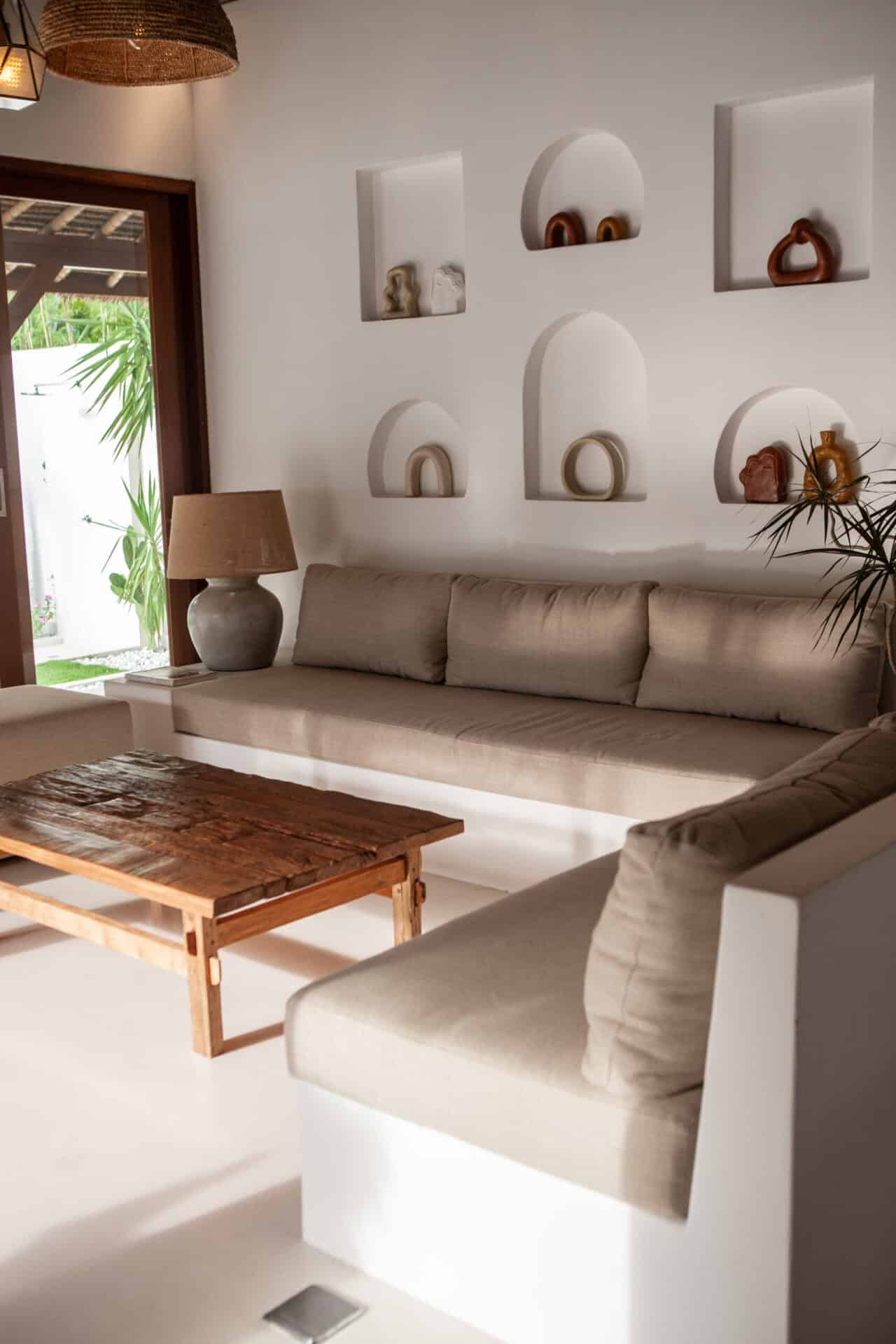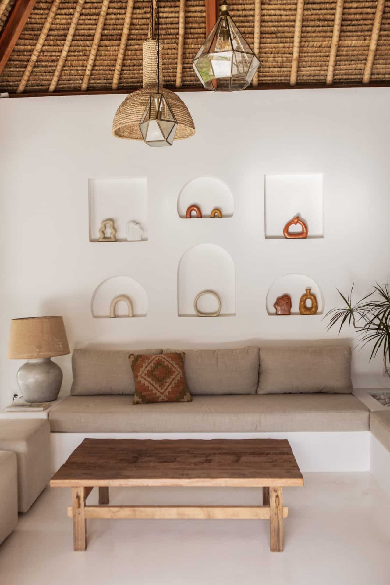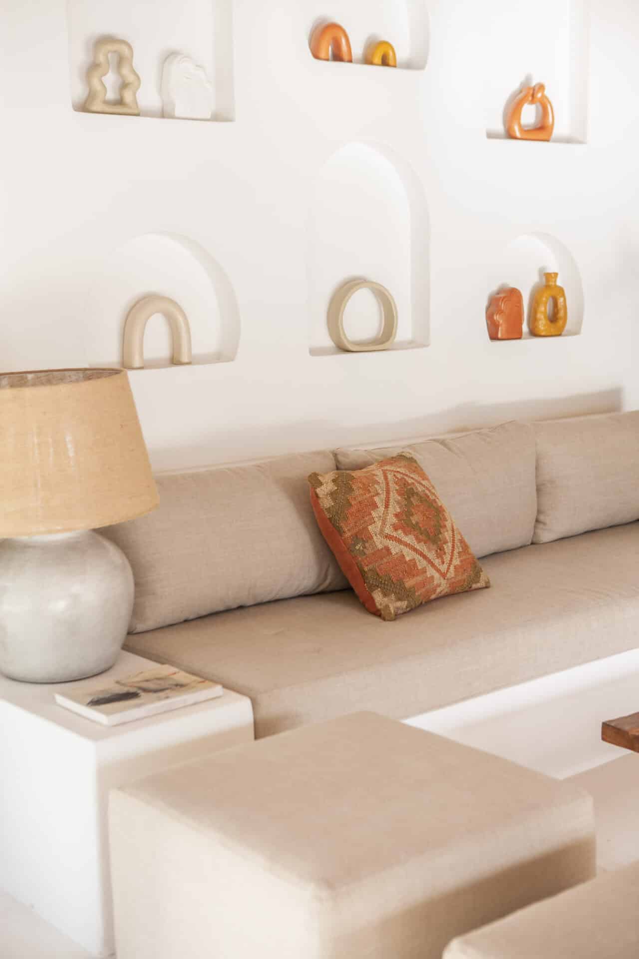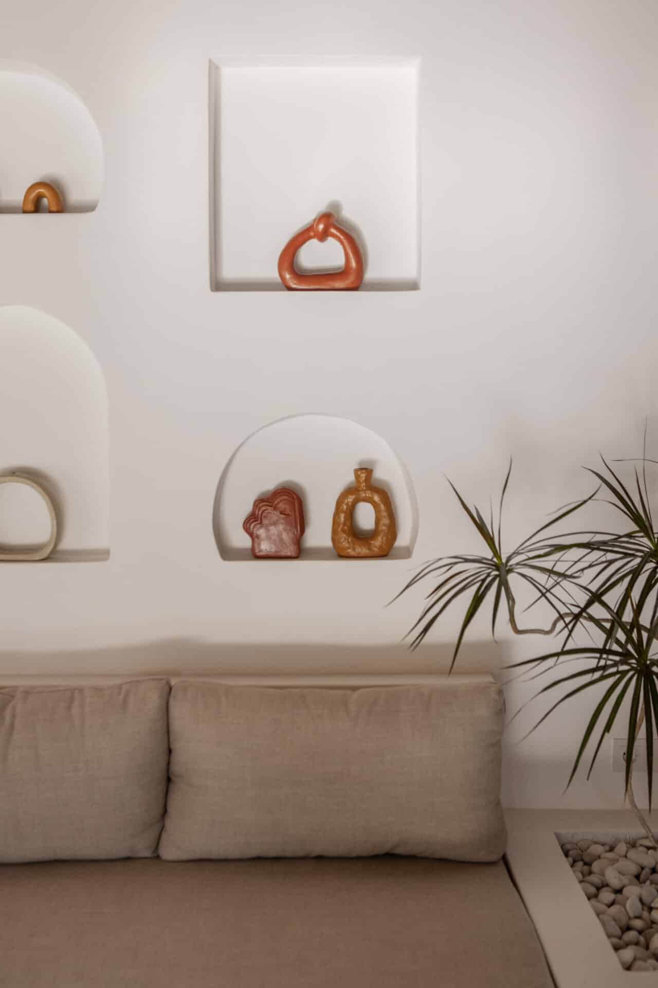 By integrating a seamless transition between the indoor lounge and the lush poolside garden, we allowed natural light to flood the space and highlight our signature white wash walls and custom arched wall niches. Each niche serves as a curated gallery for artisanal ceramics in warm terracotta and ochre tones, adding a layer of tactile history to the contemporary structure.